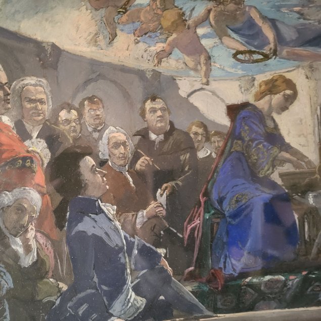 Im Mittelpunkt der Begleitausstellung zum Musikfest Erzgebirge stehen diesmal originale Musikwerke – Drucke und Handschriften aus einer Zeitspanne von fünf Jahrhunderten sowie Raritäten historischer Instrumente. Als Highlight der Ausstellung präsentieren die Städtischen Museen Annaberg-Buchholz ein neu erworbenes Gemälde: „Frau Musika“ ist eine in Aquarelltechnik ausgeführte Allegorie der Musik mit der Darstellung vieler bedeutender Komponisten – ein bisher unbekanntes Werk des in Annaberg geborenen Malers Rudolf Köselitz (1861–1948).