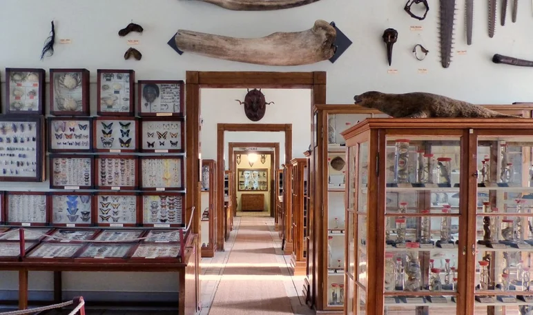 Büschelförmiger Kalkspat, große Bleche von gediegenem Kupfer und allein sechs Vitrinen voller prächtig gefärbter Minerale und Edelsteine, dazu versteinerte Pflanzen und Tiere - das Museum zeigt faszinierende Schätze der Erde.