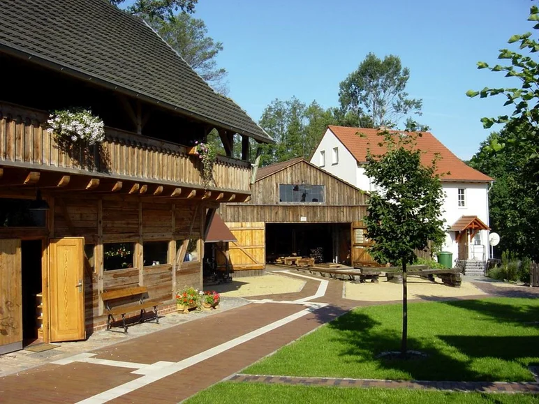 Die aus umliegenden Dörfern stammenden Schrotholzhäuser vermitteln das Bild eines Lausitzer Heidedorfs des 19. Jahrhunderts.
