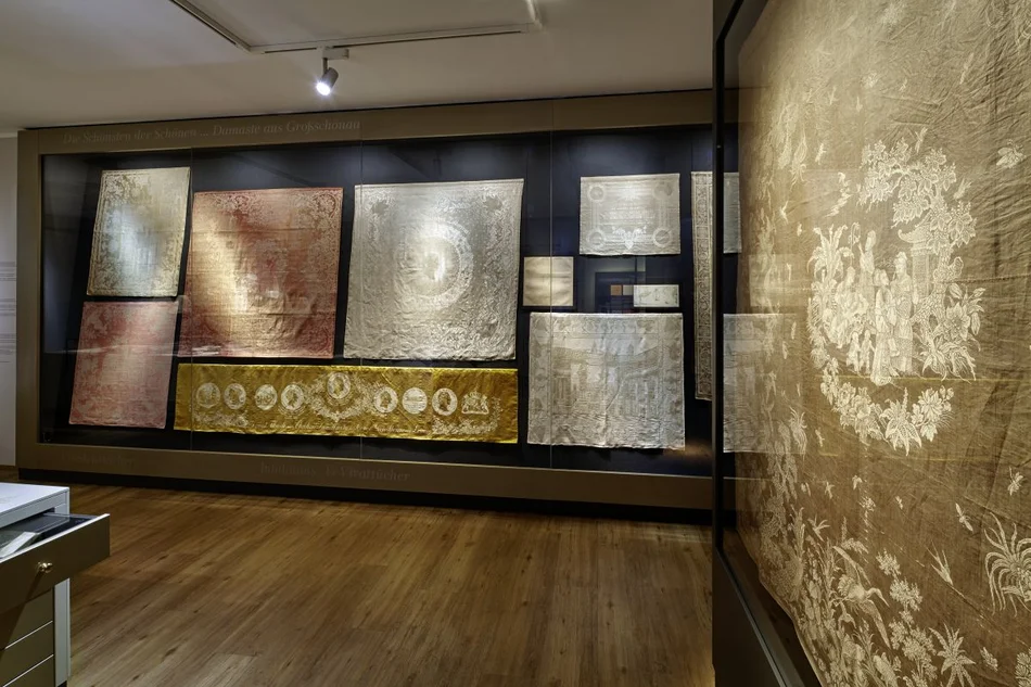 Das Museum zeigt technische Raritäten, die es nur noch in Großschönau gibt: einen funktionstüchtigen, rekonstruierten Damastwebstuhl aus dem Jahre 1835 und den letzten Frottierhandwebstuhl Deutschlands. In der Schauwerkstatt kann man in der vergrößerten textiltechnischen Ausstellung die Entwicklung vom Garn bis zur fertigen Konfektion bei Glattgeweben und bei Frottierwaren nachvollziehen. In der Damast-'Schatzkammer' ist eine einmalige Sammlung von Damasten aus drei Jahrhunderten zu sehen.