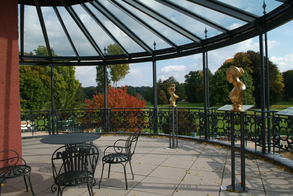 Beim Spaziergang im Park gilt das Interesse natürlich auch den historischen Bauten. Das wieder aufgebaute Neue Schloss im Herzen des Muskauer Parks ist eine dreiflügelige Anlage im Stile der Neorenaissance und war Wohn- und Arbeitssitz der Muskauer Standesherren. Die Ausstellung widmet sich in unterhaltsamer Art und Weise dem Leben und Wirken des Fürsten Pückler-Muskau, insbesondere seiner großen Leidenschaft, der Gartenkunst. Von der Aussichtsplattform auf dem Turm des Neuen Schlosses bietet sich ein fantastischer Rundblick auf den Muskauer Park.