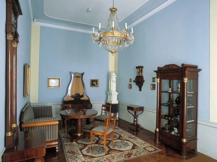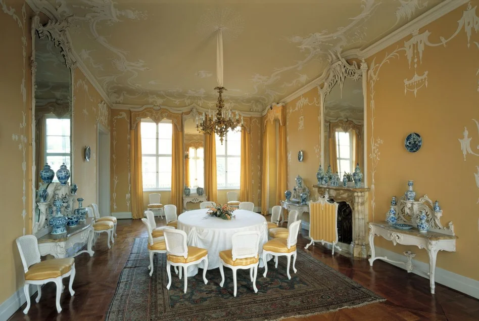 Schloss Pillnitz, Lustschloss und Sommerresidenz des sächsischen Hofes, liegt unweit vom Stadtzentrum Dresdens entfernt idyllisch zwischen Elbe und Weinbergen. Viele prächtige, mit den Kurfürsten und Königen Sachsens verbundene Gegenstände und Räume sind hier erhalten. So zeugen vergoldete Throne, einzigartige Silbermöbel, farbenprächtige Lackmöbel und andere im Auftrag der Herrscher entstandene kostbare Möbel sowie weitere virtuose Spitzenleistungen der Hofwerkstätten der sächsischen Kurfürsten und Könige vom Streben nach Luxus und Eleganz. Zu entdecken sind aufwändig bemalte und geschliffene Gläser der Hofkellerei, edelste Textilien wie Damaste, Stickereien und Spitzen sowie ausgewählte Stücke aus der königlichen Sammlung italienischer Majoliken, Delfter Fayencen und deutschen Steinzeugs. Weitere Höhepunkte – vom mittelalterlichen Antependium bis hin zu Möbeln des 20. Jahrhunderts – führen durch die Geschichte des regionalen und internationalen Kunsthandwerks aus fünf Jahrhunderten. Auf einer Zeitreise durch die Geschichte des Kunsthandwerks bis zum modernen Industriedesign sind zahlreiche Werke des Dresdener Jugendstils und die Maschinenmöbel der Deutschen Werkstätten Hellerau besondere Höhepunkte, die auf die Rolle Dresdens als Wiege der Moderne verweisen. Vom Schaffen zeitgenössischer Designer zeugen Beispiele Piero Fornasettis, Shiro Kuramatas, Ron Arads, Dale Chihulis und vielen anderen. Wer vor allem die kurfürstlich-königliche Atmosphäre genießen will, dem seien der „Gelbe Salon“ mit seinen prächtigen Chinoiserien, der im Stil von Watteau gestaltete Speisesaal oder die Reihe von Kabinettschränken im „Weinlig-Zimmer“ empfohlen – sie alle wurden von der königlichen Familie während ihrer sommerlichen Aufenthalte auf Schloss Pillnitz genutzt.