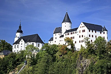 Auf einem Felsen, mitten in der historischen Altstadt, thront Schloss Schwarzenberg. Um 1150 als Schutzburg errichtet, erfolgte unter Kurfürst August bis 1558 der Umbau zum Jagdschloss. Seit 2014 ist die neue Dauerausstellung 'Perla Castrum - Ein Schloss voller Geschichte' zu besichtigen. Perla bezieht sich darauf, dass Schwarzenberg als Perle des Erzgebirges bezeichnet wird; Castrum steht für Schloss. Die Schau gewährt über drei Etagen Einblicke in die Geschichte von Stadt und Region. Dabei wird auch auf die 'Unbesetzte Zeit - Freie Republik Schwarzenberg' eingegangen - die 42 Tage nach der Kapitulation der Wehrmacht am 8. Mai 1945, an denen keine der Siegermächte das Gebiet besetzte.